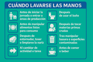 Los Centros para el Control y la Prevención de Enfermedades (CDC) de Estados Unidos actualizaron en 2025 sus guías de higiene de manos, aplicables también a la industria alimentaria. Estas indican que existen momentos críticos en los que el lavado de manos resulta indispensable para evitar la transmisión de patógenos y proteger la inocuidad de los alimentos:
